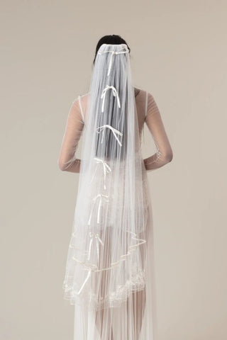 Martina Satin Bows and Pearls Embroidered Veil | Ofrenda