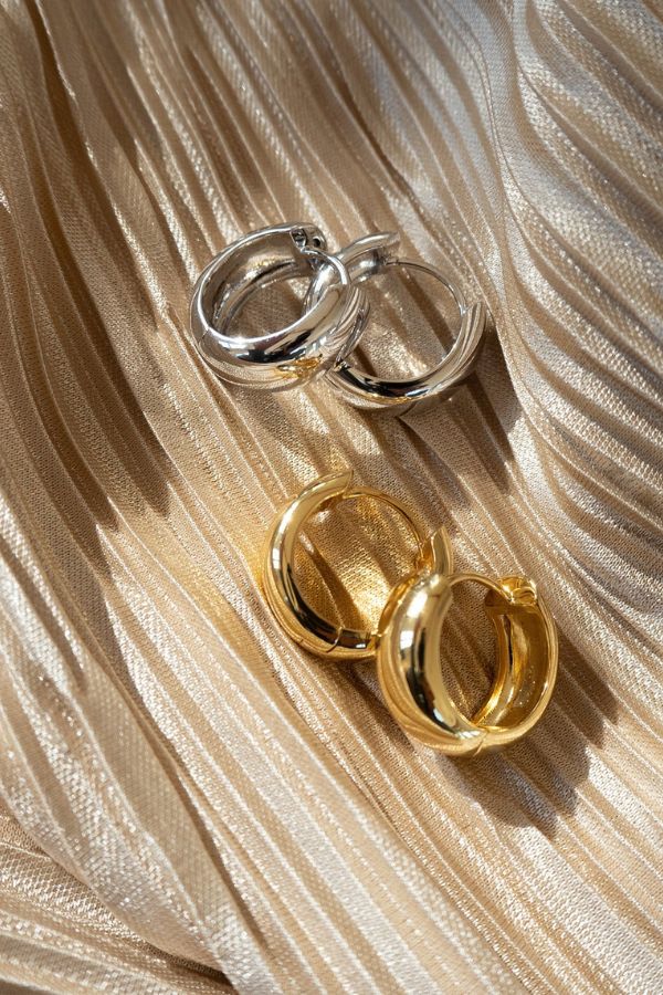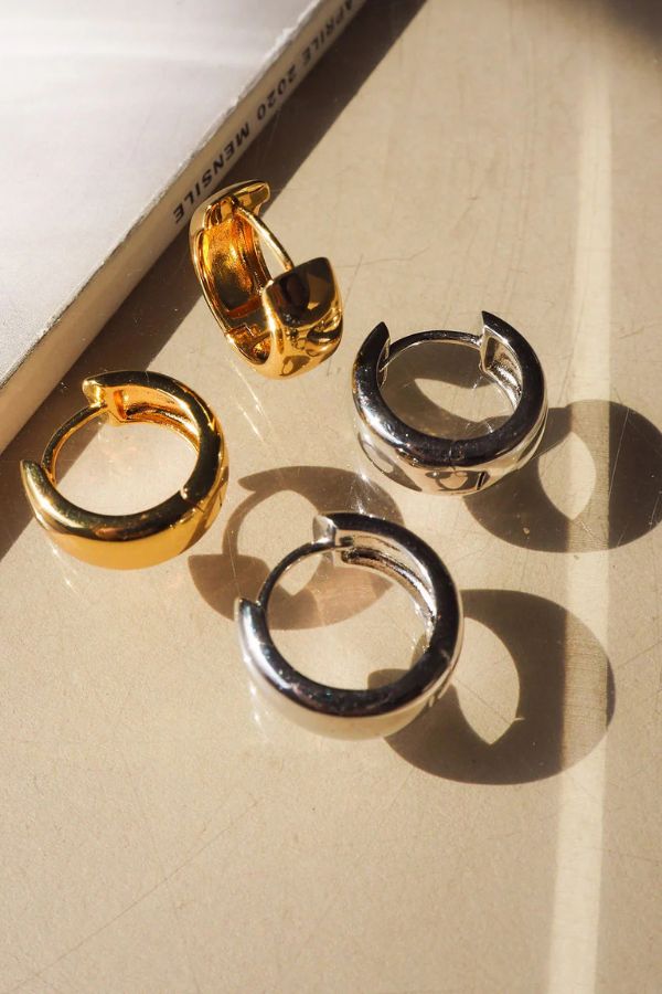 Pair of wide metal huggies.
