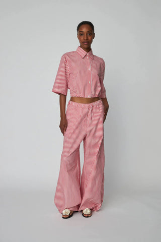 Oversized Striped Cotton Pants | Red Stripes