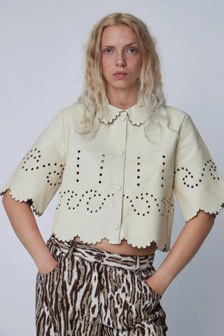 Pointelle Leather Shirt | Almost White