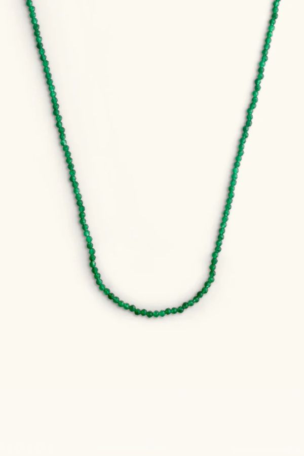 Named for its grounding green, the Oren Necklace is strung with emerald-toned beads that shift effortlessly from day to night.